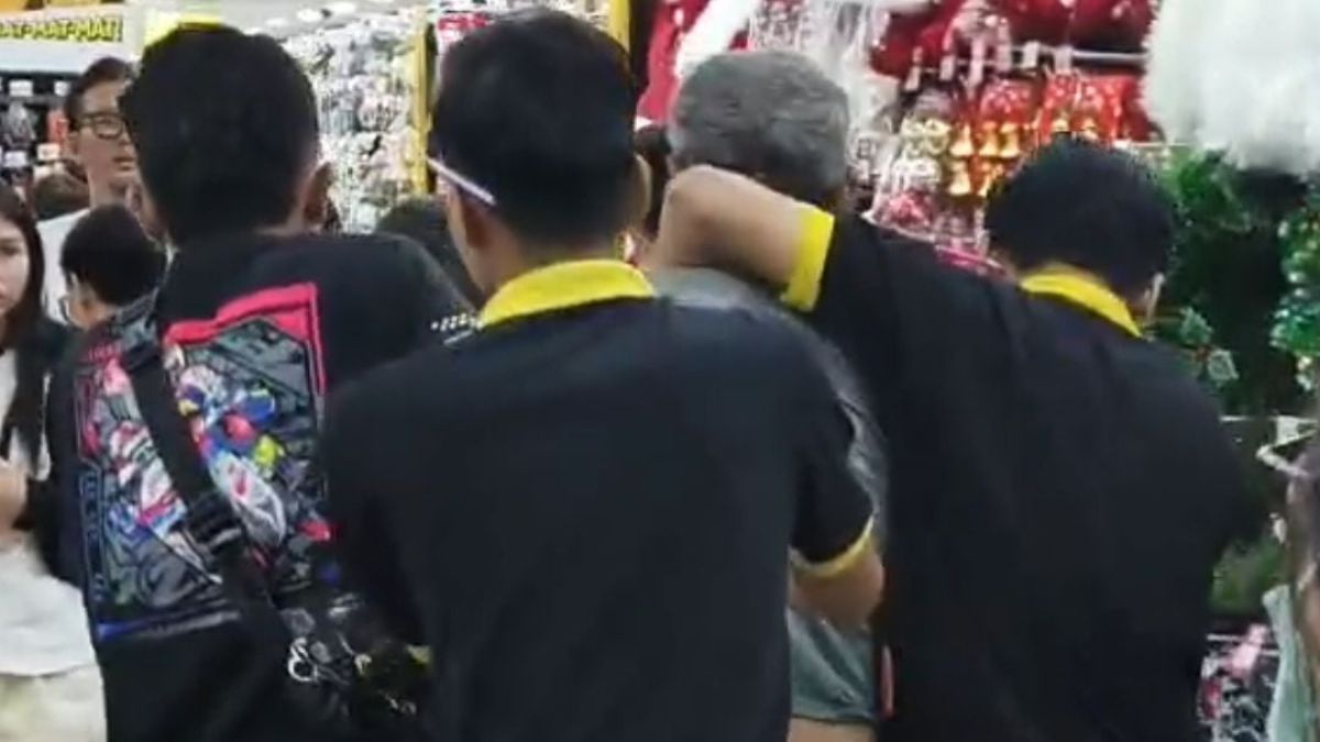 Pengunjung dan karyawan salah satu supermarket di Pontianak saat mengamankan terduga pencurian, Kamis (18/12/2025). (Foto: RRI Pontianak/Indri)