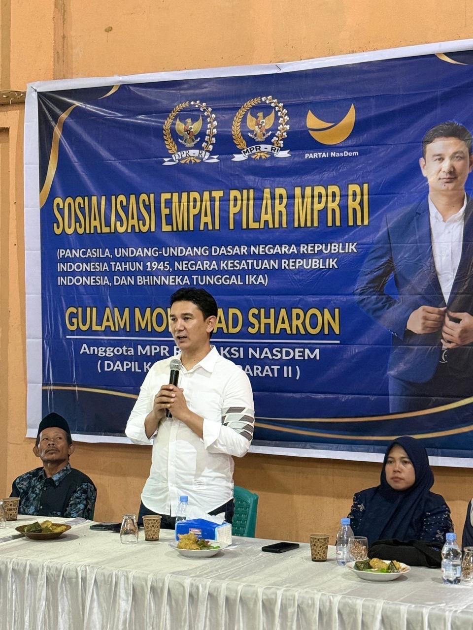 KALBARAYA, SANGGAU – Pada tanggal 10 Februari 2026, Anggota MPR RI dari Fraksi Partai NasDem, Gulam Mohamad Sharon, kembali turun ke daerah pemilihannya (Dapil Kalimantan Barat II) untuk melaksanakan agenda Sosialisasi Empat Pilar Kebangsaan. Kali ini, kegiatan dipusatkan di Desa Suka Mulya, Kabupaten Sanggau, Kalimantan Barat.